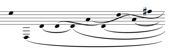 Another idea is the imitation of the reentrant tuning of a theorbo. Prominent feature is the non-linearity of arpeggiation as a result of this reentrant tuning.