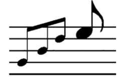 In the lower illustrations real time is being represented by both, horizontal and vertical axis. The higher (and proportionally wider) a beam, the more time is being given to the corresponding note by the performer.