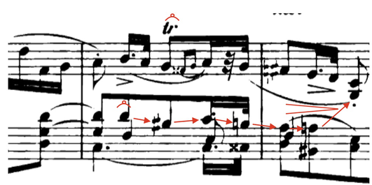 - Rachmaninov employs arpeggiation to subtly highlight inner voices, to make them sing with/against a main voice.