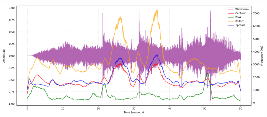 Audio features play a crucial role in music analysis by capturing diverse characteristics of sound, such as timbre, rhythm, pitch, and dynamics, enabling their application across various domains. In music information retrieval (MIR), these features are used to classify genres, identify songs, or recommend music based on similarity. In musicology, they provide quantitative insights into the structural and expressive qualities of musical works, aiding scholars in understanding compositional techniques and stylistic evolution. Furthermore, sound descriptors can be employed in big (audio) data analysis. Beyond these applications, audio features may also be used as a bridge between auditory and visual domains, facilitating the creation of artistic visual representations that are synchronized with sound, such as in multimedia installations or data-driven music visualizations.