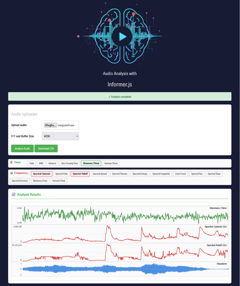 Real-time analysis of audio streams Analysis of live audio streams and output data in various formats. This data can be used directly within compatible software for immediate visualization or recorded into text files, CSVs, or other text-based formats for later analysis.