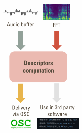 How sound descriptors can be usedin artistic and scientific practices? How to build an integrated framework that allows the computation and broadcasting of sound descriptors, also in real time, to cover a wide range of use cases using the same base interface?