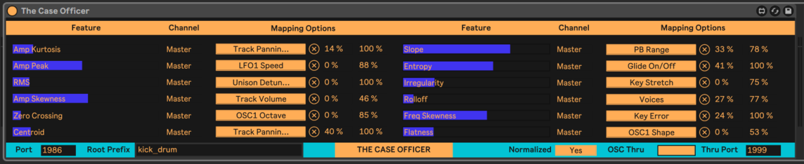 Moreover, a Max for Live receiver device, that grabs the information sent through OSC by the plugin or by the Rack module, allows for an instant integration of the tool within Live, with each descriptor that can be used to modulate any parameter in the DAW.
