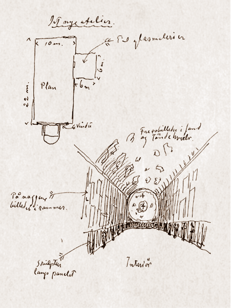 Since its public opening in 1959, the mausoleum of noted artist Emanuel Vigeland (1875–1948) has attracted an increasing number of visitors. The interior of the dimly lit, rectangular and barrel-vaulted room is in its entirety covered by the fresco Vita, thematizing the miracle of human reproduction within a deeply Christian context (Jansen 1977). The monumental painting matured through different stages between 1927 to 1947, initiated only a year after the brick construction was erected in the residential area of Slemdal in Oslo. During that time, every window of the building was bricked shut in order to prevent natural light from entering into what would become the artist's mausoleum. The ashes of Emanuel Vigeland are contained in a hollowed, egg-shaped beach stone that rests in a niche over a conspicuously small door. Upon leaving the mausoleum one is forced to bow down to its creator.