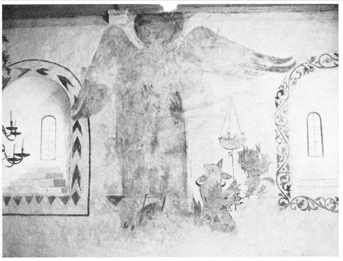 Secondly, in contrast to the tall and wide windows that arose due to technical advances of Gothic architecture, the preceding Romanesque style had narrowly shaped, and relatively few, windows. They allowed only limited portions of sunlight to enter the church. To some extent these churches were dark and gloomy, and the lighting was defined by oil lamps and candles. In this way, frescoes decorating interior walls were dimly lit and appeared in flashes from artificial light sources. The frescoes depicted, among others, the devil in various grotesque and animal forms, echoing a religious idea of the human soul as vulnerable to constant attacks from evil forces in the absence of God's protecting light. The sense of danger within a Romanesque church was expressed in both the structured rites performed in the choir (what would happen if they were not carried out?) and the threatening depictions on the dimly lit interior walls.[4] It has also been noted that sound, especially when accompanied by darkness, offers an ideal ritual marker in that it is all-encompassing and, reaches the participants with greater ease than visual stimuli (Jackson 1968: 295–296).