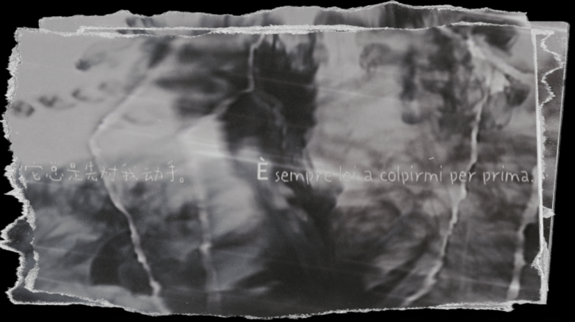 Questa posizione risuona con l’atto di scrittura interrotto presente in questo lavoro, dove l’arresto del linguaggio rende visibile la violenza del processo creativo.