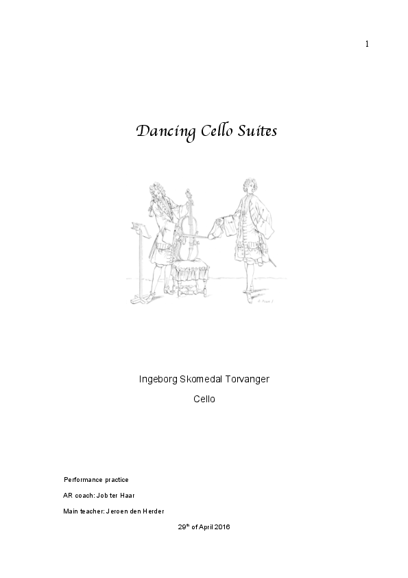 The aim of this research is to explore the many differing opinions and available options when playing early music, in particular, the music of J.S Bach. This research focuses on Bach´s cello suite No.1 in G-major. The numerous possibilities in interpretation of Bach´s music were the motivation behind gaining knowledge about historically informed ways of playing. I was also interested in exploring the relationship between dance and music during the baroque period. Therefore, my research specifically examines how I can apply the characters of baroque dance into my performance of Bach cello suite no.1. Although the Bach suites were not intended to accompany dance, features such as tempo, gestures of dance choreography, and characters of the dances have provided me with important insight in my playing. These changes are also due in part to the connections I have made with some notable experts in the field such as Anner Bylsma, Tormod Dalen, Lucia Swarts, as well as studying literature on the topic, and by listening to selected recordings. This research aims to help and develop my own personal style of playing Bach, with a further goal of inspiring and sharing this knowledge with other cellists.