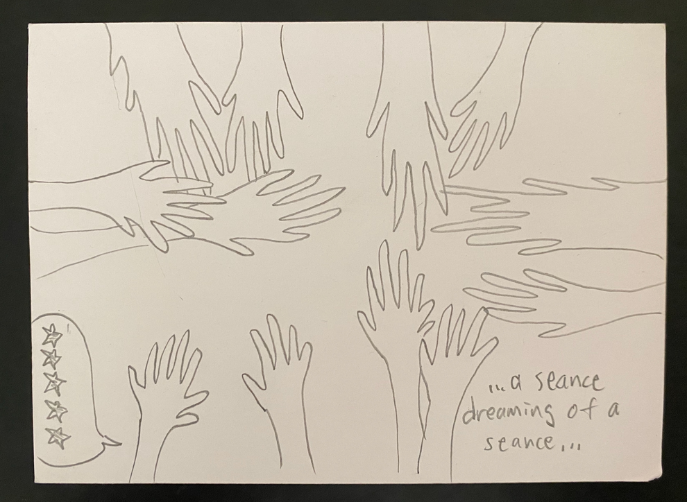 Taking further the work Christine and I did on our previous piece, Ecstasies of Rooms, in which we use voice to attune to emanations from our living rooms, in this piece we attune to the ecstasies (in Bohme's (2016) conception of the term) of physical objects we encounter together on a table, inviting four other participants to co-create the encounter with us. Unlike Ecstasies of Rooms in which we guide participants step by step in how to attune to space through voice, in this piece we build on the kind of non-verbal participation that I explored in Tea Break.