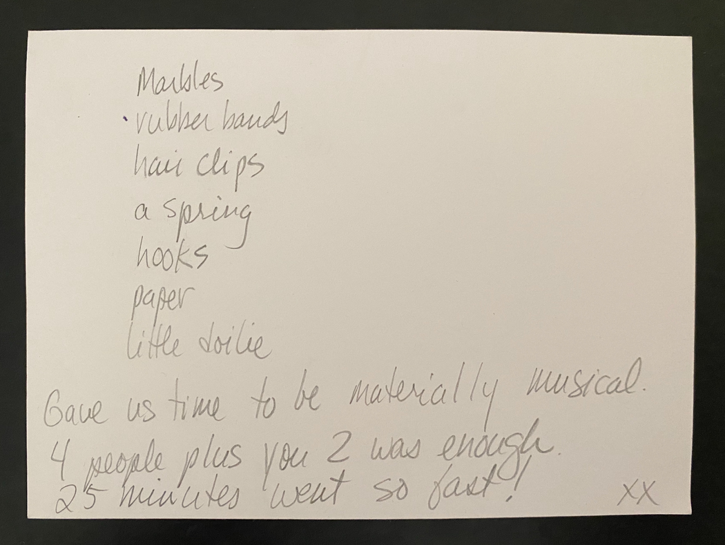 Even though voice becomes absent from the encounter as soon as we sit down, the type of attention we use to engage with the objects taps into the musicality objects have beyond the sounds they make.