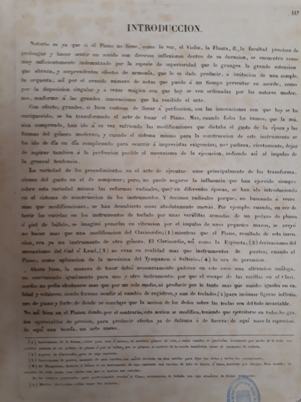 This quote is interesting for two reasons. First of all, Pedro Albéniz certainly liked the development of the instruments, something that can be observed in his catalog. He tends to explore the range of the instrument through deep octaves bass notes and long lines of scales located in the high register. Furthermore, at the end of the quote, he seems to insinuate that there were not good performers who played five octaves pianos. He is probably referring to what was happening in Spain if we consider the lack of repertoire and the information we have about performers.