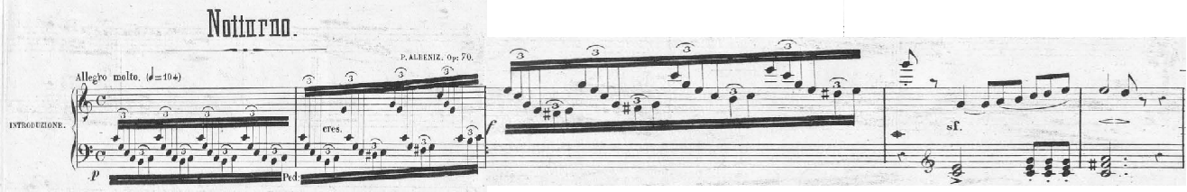 These genres are the absolute minority in Albéniz´s catalog, as well as in Kalkbrenner and Herz´s. He composed a romance for two pianos, two lieder, and two nocturnes as far as we know. They are works structured in three parts with introduction and coda.