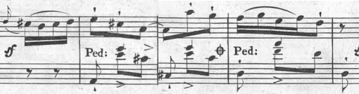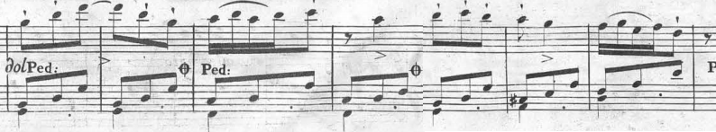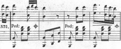 The waltzes present a regular symmetrical Romantic structure. The theme is repeated in octaves or ornamented (especially with appoggiaturas). There is no transformation of the material but variation or contrast of themes, which do not develop. The pedalization simply denotes emphasis in the first part of the bar, either in the cadences and, above all, feels necessary in the higher registers as he also recommends in the method[25].