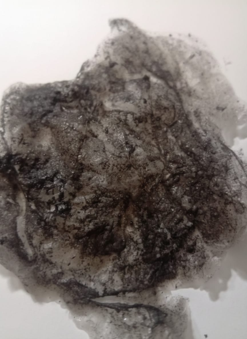 5.2 Methodology: Material Condensation Unlike industrial filtering processes, this research aims to integrate smoke into the very structure of the work. Affinity Absorption: Through the use of natural mixtures (such as toothpaste and cotton fibers) that act as active filters, the smoke is “trapped” and stabilized. The density of the toothpaste allows the particulate matter to be fixed without the use of synthetic chemical glues. Alchemical Gray: The color of the smoke is not simulated with pigments; it is the physical result of the trapped combustion. It is a “true” color, born of fire, rendered solid.