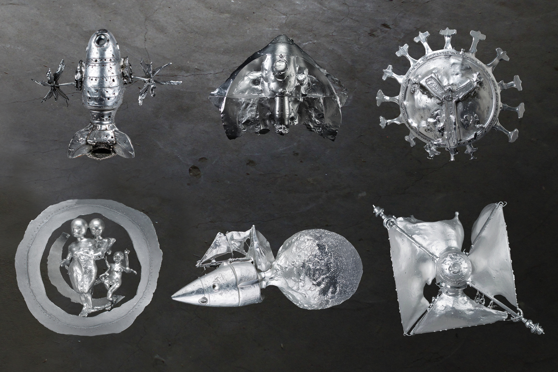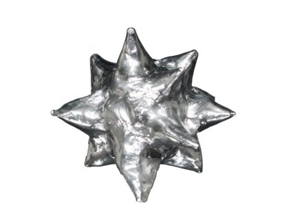 This work draws its inspiration from a tradition found across cultural contexts in which molten metal, often tin, is poured into water on New Year’s Eve. The unpredictable, abstract forms that emerge from this rapid transformation are then “read,” their contours and shadows interpreted as omens or signs of what the coming year might hold. This practice, at once playful and profound, proposes that futures are not linear or predetermined but can be glimpsed through acts of imagination, interpretation, and chance
