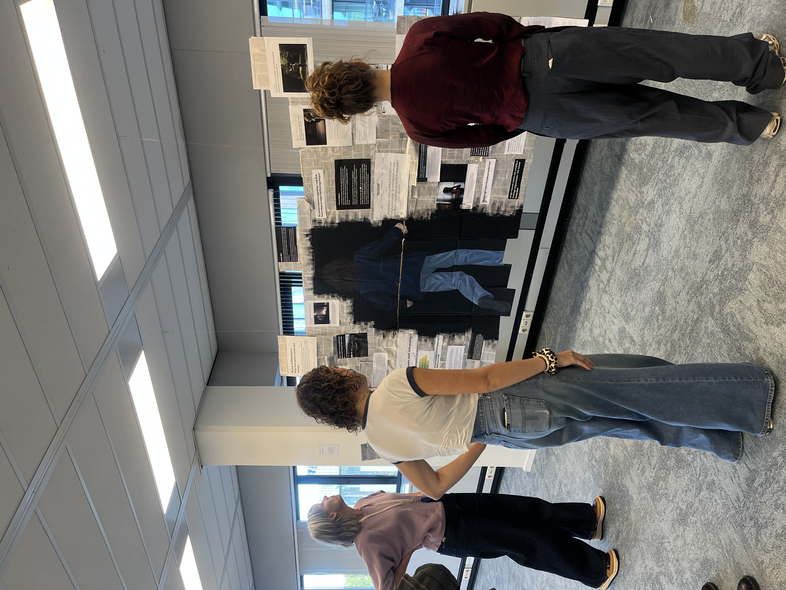 Een expositiewerk over de urgentie van dit vraagstuk. Een schilderwerk in combinatie met recente krantenkoppen.