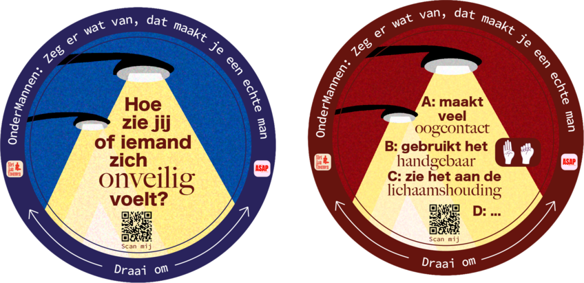 Dit concept is ontstaan uit een samenwerking met Yeline Hoogmans, met de start-up ASAP. We hebben een concept bedacht genaamd OnderMannen waarin bierviltjes het gesprek over veiligheid op straat op gang brengen, bij zowel mannen als vrouwen. Zo creeëren we meer bewustzijn bij mannen.