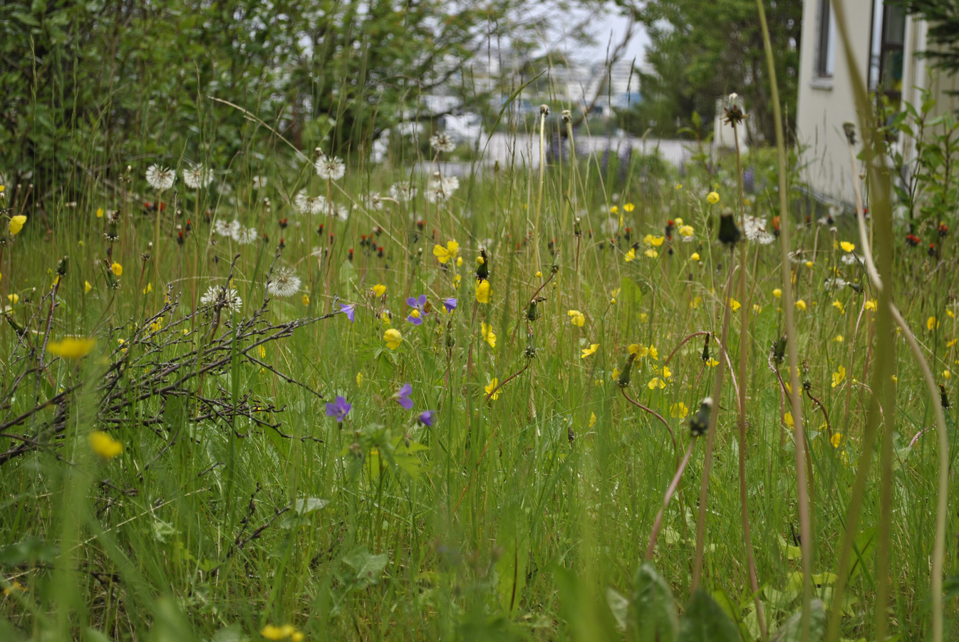 At Hávegur in Kópavogur, on the north side of the street, traces of seventy years of habitation are shifting, somewhat temporarily, with new plans and construction projects aiming to densify the built environment of Digranes. In some gardens, plants are reclaiming space, while in others, hard gravel is flattening the softness of the soil to make room for building materials, parking areas, and construction machinery.
