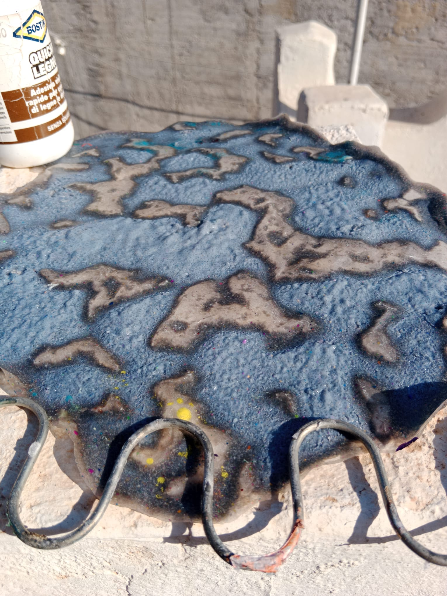 A. Casting on a smooth surface The mixture is spread in a layer of 1–3 mm. Drying generates natural micro-cracks and porosity.