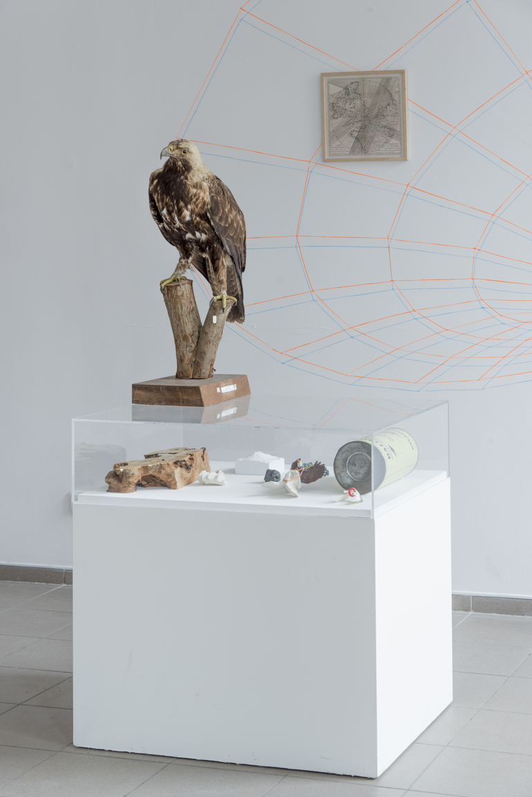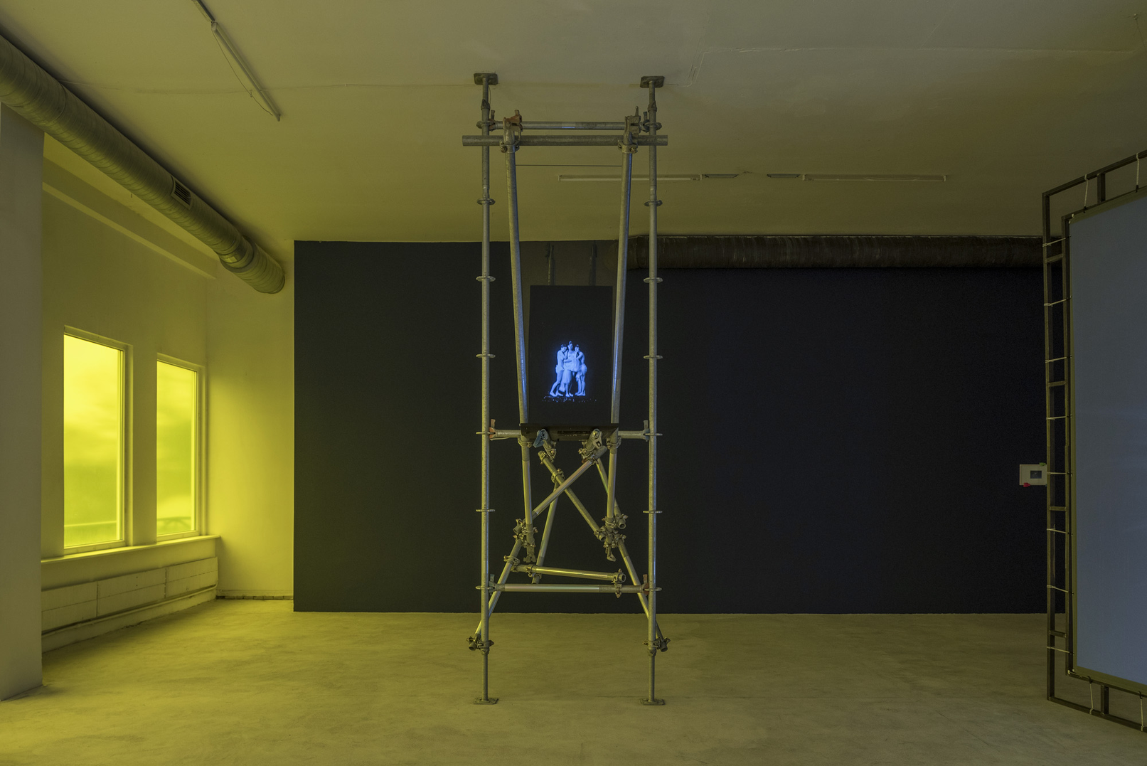 In this formulation, the theme of the exhibition in the Atelier am Eck is already developing: the installation encircles as multi-faceted myth of Prometheus, updated by means of various objects and medias.