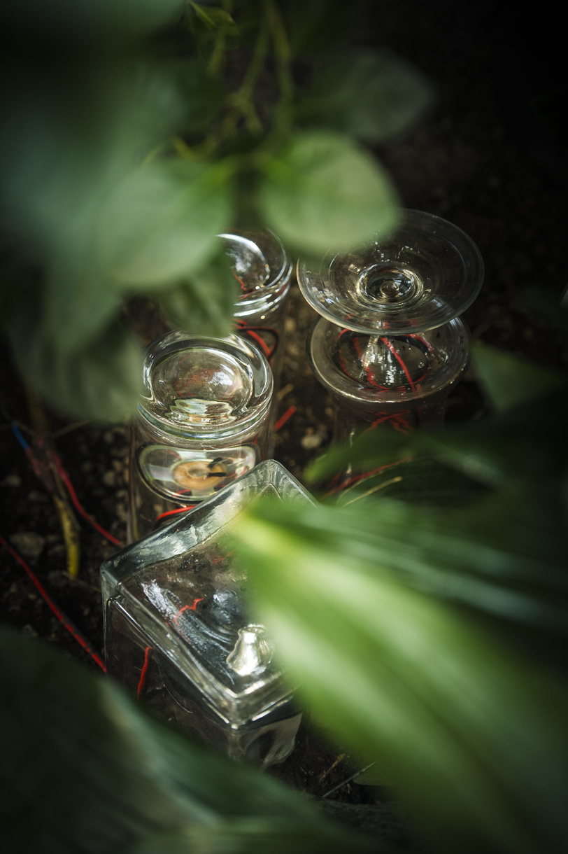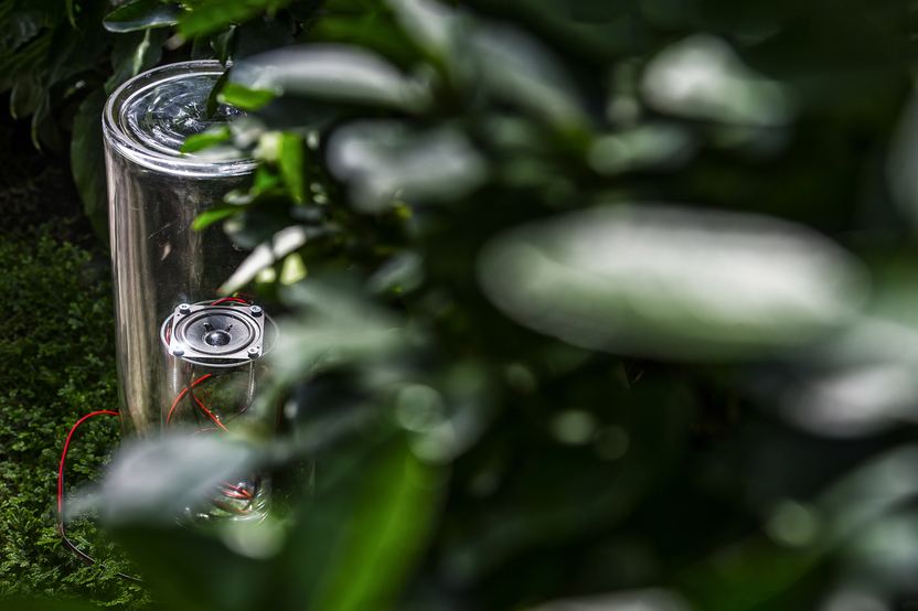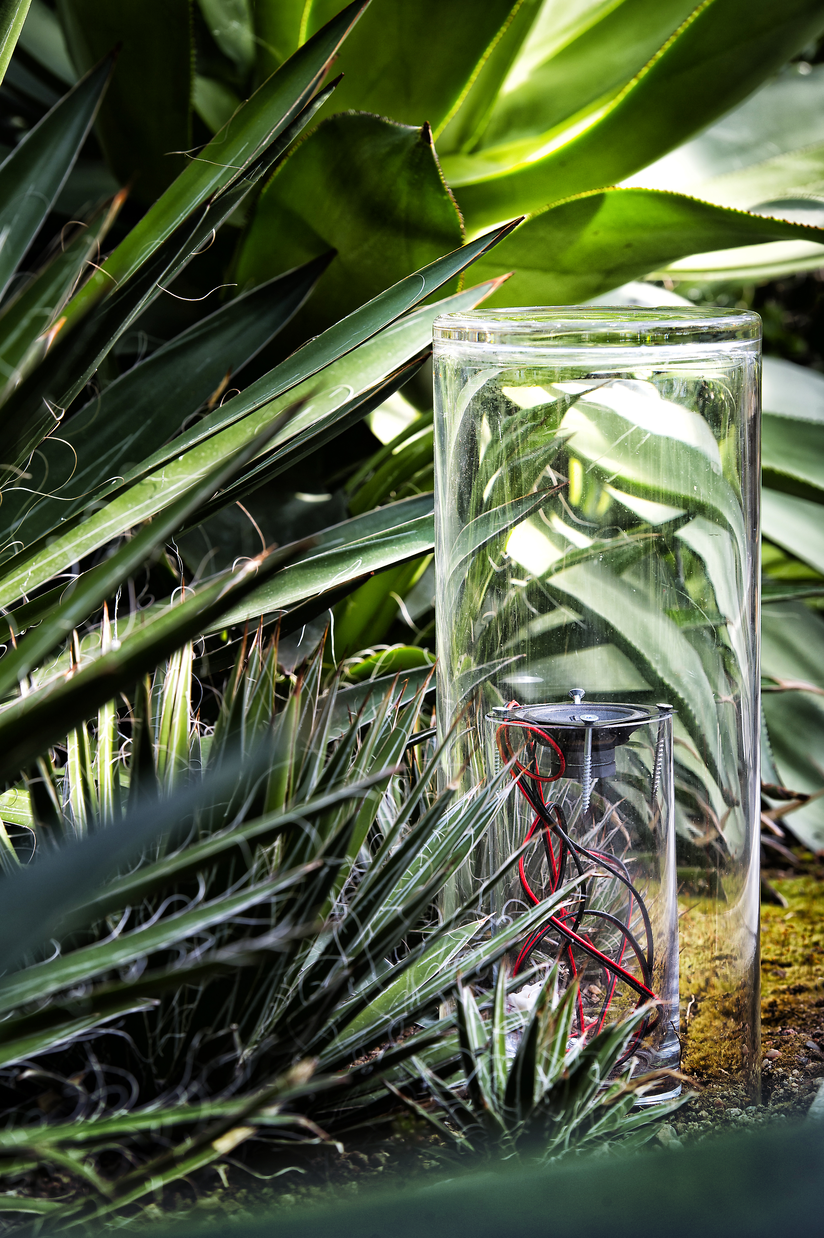Sonic Greenhouse proposed an early sonic acupuncture attempt. We tested how the placement of sonic objects at key spots would affect the overall sonic situation by placing glass speaker-pots in the central area, by the fishpond in the Palm Room, and in the central area of the Cactus Room. The sounds produced by these objects were strategically designed to affect all the other sounds happening in the public space.
