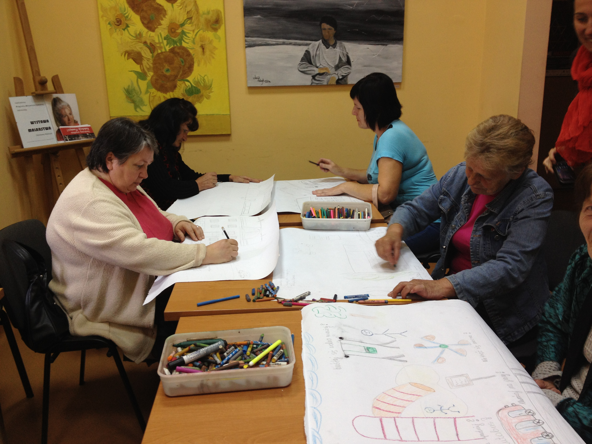 Bobrek is isolated from the centre of Bytom, and about fifteen minute tram ride from the old square, rynek. Bobrek felt more like a village than a suburb, and maybe that was the reason it had a sense of community, aside from all social, economic and environmental problems. These women, who took part in the workshop, organize events by themselves and through the MOPR. Most of them have lived a long time in Bobrek – some over forty years – therefore they had witnessed the effect of the economic transformation in their area affecting their lives and the change of the community. In the past twenty years, Bobrek has declined from respectable neighbourhood into a “problem” area. Before 1990s sixty percent of the people living there were working in the Bobrek mine or steel factory. Now, the numbers have turned upside down, and most people are unemployed. The women claimed that people themselves are not the problem, but that the misery was due to disinterested city administration. They complained that they were forgotten by the city hall and administration.