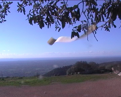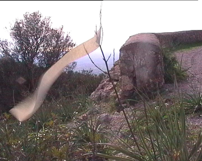 While staying on Mount Randa on Mallorca a few weeks in October 2000, I had the intention of writing a radio play about Ramon Llull, who according to tradition had received the inspiration to his magnum opus on that very mountain. There one could find, besides a museum devoted to the memory of Llull, also a cave where he supposedly spent some time. I also videoed a work, which was structured in a way resembling the work I had videoed in the Pyrenees the previous year, Where the Sea Begins, where I followed two mountain brooks on their way down to the valley and videoed their water flow approximately every ten meters. On Mount Randa I videoed the movement of a piece of paper, fastened on branches or in the grass by the roadside in the wind. I had written a sign for harmony and good luck on a piece of paper cut off from a receipt roll. I began videoing at the foot of the mountain and progressed a bit further up every day finally ending up at the courtyard of the monastery. This daily rather tiresome and time-consuming process of videoing did not produce such video material or such an experience that would have resulted in an artwork, even less in an artistic research project. It remained an empty experiment. It could be worthwhile to ponder why the images did not turn out to be interesting, or why I lost my interest for them, and moreover, why I stubbornly continued with the experiment until the end, even though I realized already while videoing that the material probably would not be inspiring enough. In some sense I continued with the process for the sake of the experience only, or perhaps out of some distorted sense of duty.