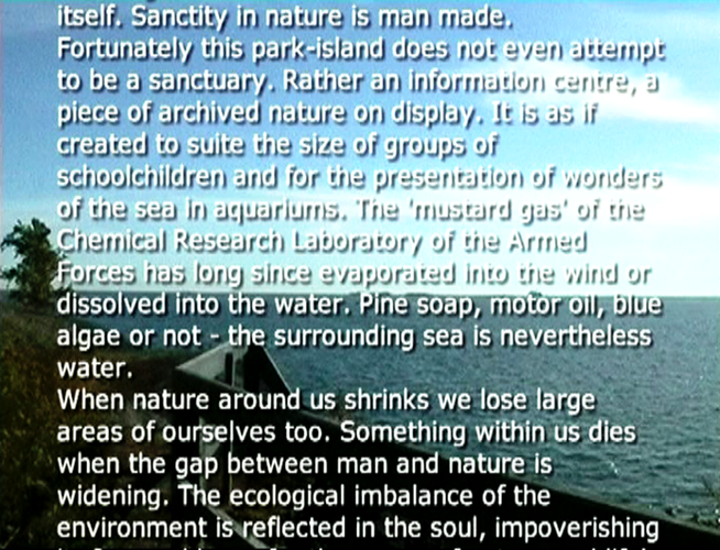 When I decided to add English subtitles for the Finnish voice over text on the ”empty” view”, the idea of using headphones did not work at all. I decided that the installation could be shown either as two parallel projections or on two parallel monitors – as long as they are synchronised.