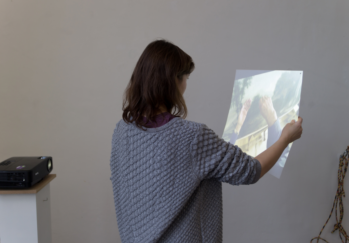 Three videos projected on a sheet of paper held by the viewer. I have asked three different absolvents of the Academy who graduated from fine art, but have been restoring historical artworks as a job all their life, to take me to the location of one such as restored works.