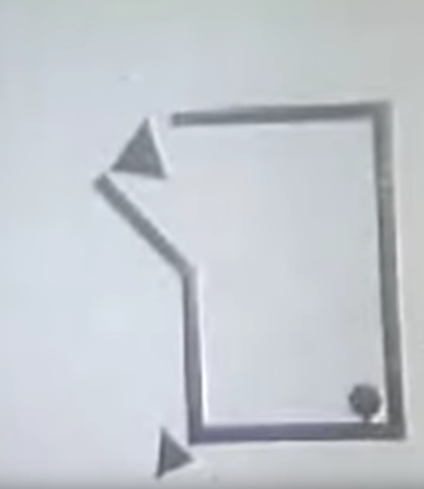 Still from animation film used by Fritz Heider and Marianne Simmel in An experimental study in apparent behavior.2