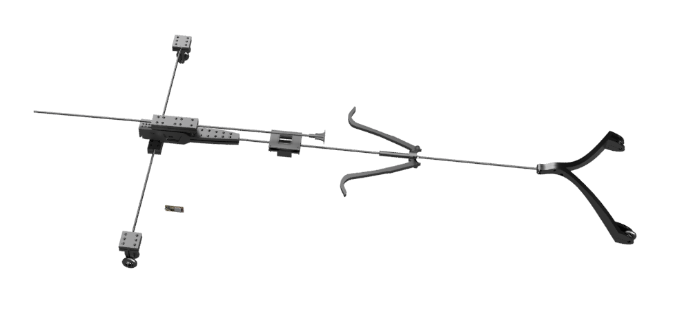 Figure #19 – swimmer consists of an 800mm long, 6mm diameter steel rod joined together at its centre point to the forward part of a 1200mm steel rod with a bracket holding a smart servo. This servo rotates the shorter of the two rods relative to the long one in any direction. At each end of the shorter rods 3D printed brackets hold small wheels 3D printed in a flexible material fitted with one-way needle pin bearings. These will only allow the wheels to rotate in one direction, similar to the mechanism used by figure #11 and #12 for propulsion. At the rear end of the longer rod, a broad “tail” holding two wheels able to rotate freely is mounted. If placed on the wheels on the ground, the figure can propel itself by turning the shorter rod by rotating the short rod a quarter turn in alternate directions in effect “swimming” across the floor.