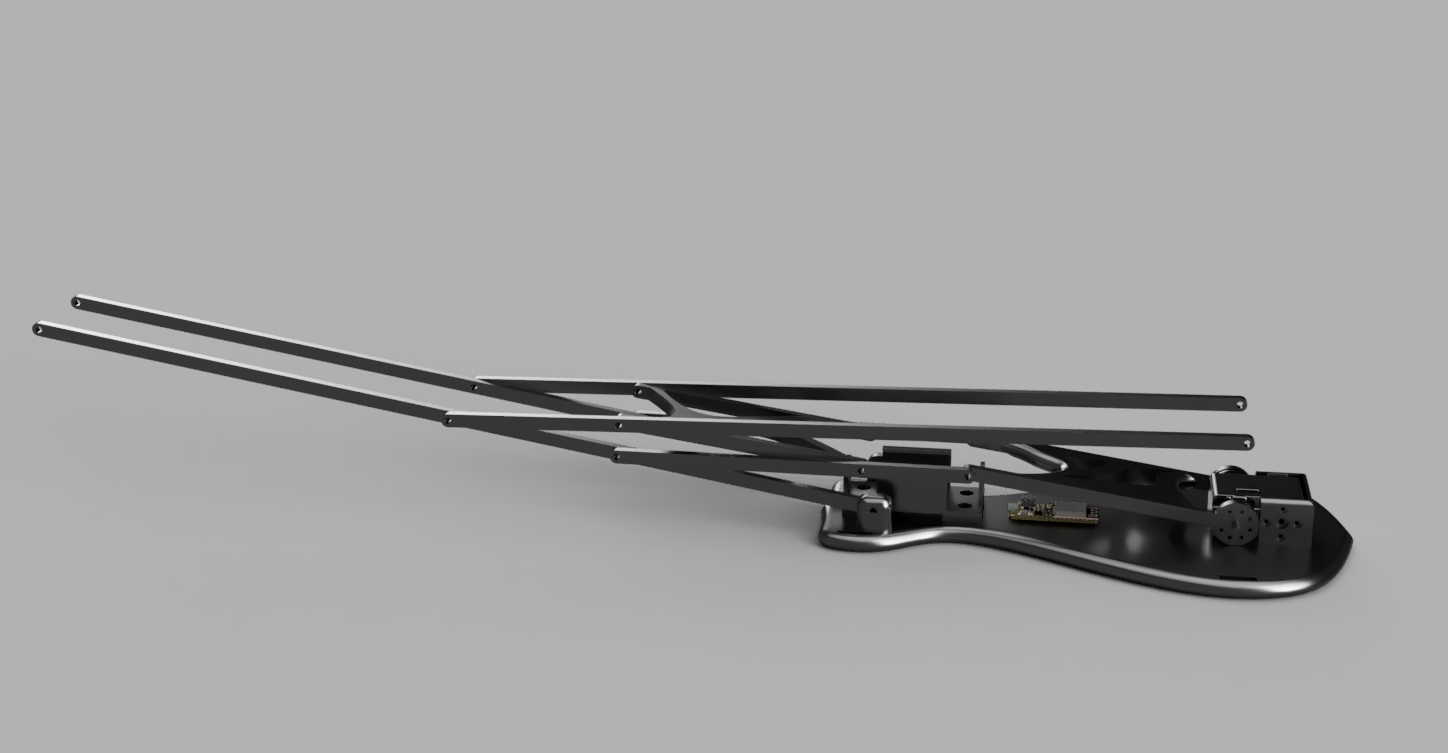 Figures #20, #21 and #22 are constructed to be worn by a human. They consist of a backplate with transparent plastic straps suited to attach to the humans back. A smart servo drives a double shaft on each plate that connects to a more extensive double linkage, translating the simple rotational movement to a more complex motion. The backplates have electronics and battery mounted to make them untethered.