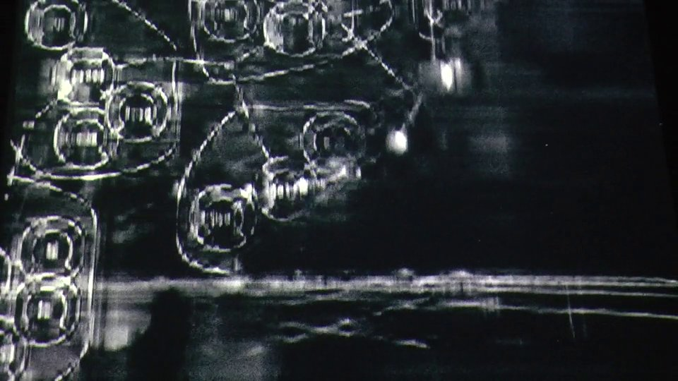 Live analog composite video mix of Wolkenpumpe and rattle, for Anemone Actiniaria (2015).