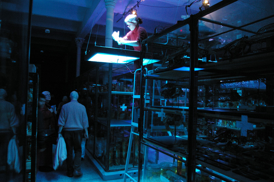 A taxomanic course through the research collections of the Museum of Natural History Berlin Collecting and classifying defines the daily routine at the Museum of Natural History. Here, in the non-public research collections, the diversity of nature becomes tangible: Thousands of birds, crabs, spiders, snakes, fossils are being collected, labelled and categorized. Comprising more than 30 million specimens, the Berlin collection is one of the world's largest. HUM – The Art of Collecting, an artistic and documentary portrait of the museum created by and starring its scientists, uses texts, spaces, sounds, objects and scenes to tell of a world contained in shelves and specimen jars, of our human passion for collecting and of the power of our love of order: Taxomania. A course in three acts leads visitors through an enormous labyrinth representing the diversity of nature, simultaneously transforming the halls of the research collections into a labyrinth signifying the utopia of knowledge.