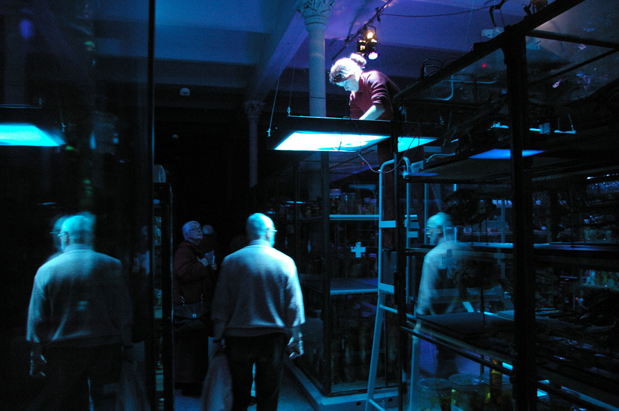 A taxomanic course through the research collections of the Museum of Natural History Berlin Collecting and classifying defines the daily routine at the Museum of Natural History. Here, in the non-public research collections, the diversity of nature becomes tangible: Thousands of birds, crabs, spiders, snakes, fossils are being collected, labelled and categorized. Comprising more than 30 million specimens, the Berlin collection is one of the world's largest. HUM – The Art of Collecting, an artistic and documentary portrait of the museum created by and starring its scientists, uses texts, spaces, sounds, objects and scenes to tell of a world contained in shelves and specimen jars, of our human passion for collecting and of the power of our love of order: Taxomania. A course in three acts leads visitors through an enormous labyrinth representing the diversity of nature, simultaneously transforming the halls of the research collections into a labyrinth signifying the utopia of knowledge.