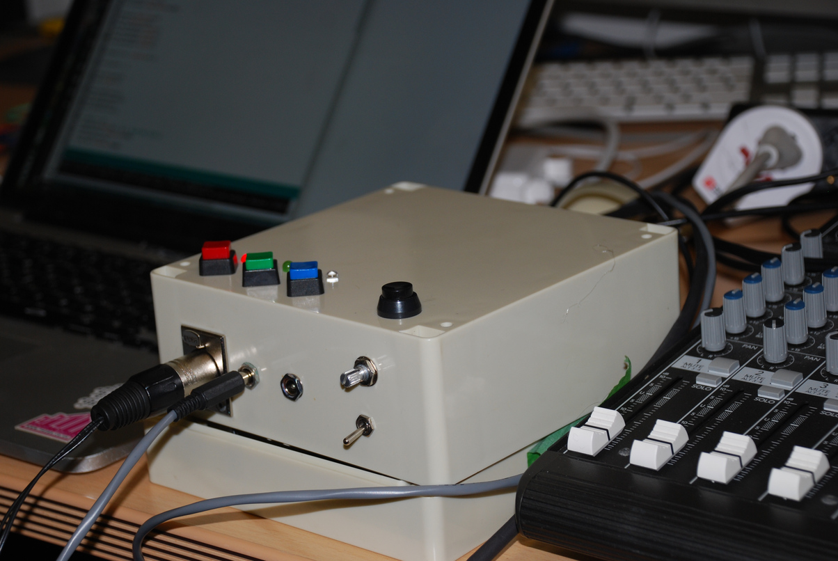 The BioSynth is a musical instrument that sonifies heartbeats and sweat release. Erin used it in her piece Song of Seven: BioChoir, and in BioSolo, an improvisation for breath/voice and sonified heart and sweat release.
