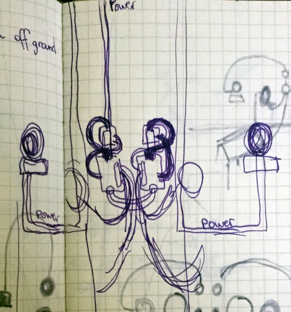And then sensors go here. And the speakers aim this way, so there’s some kind of spatiality I suppose. I also wasn’t really sure, because I was like: should the speaker go all the way down to the foot of these people? But I kind of like it better at the heads I think. Because I like this sort of swirly picture.