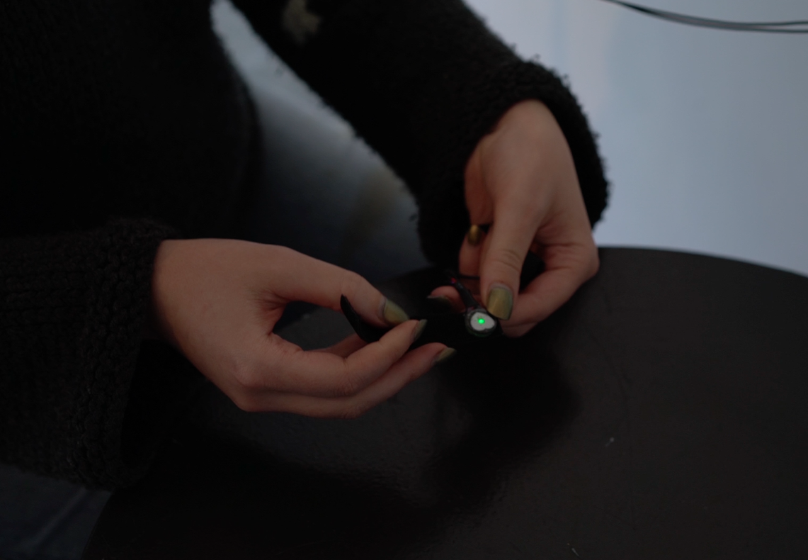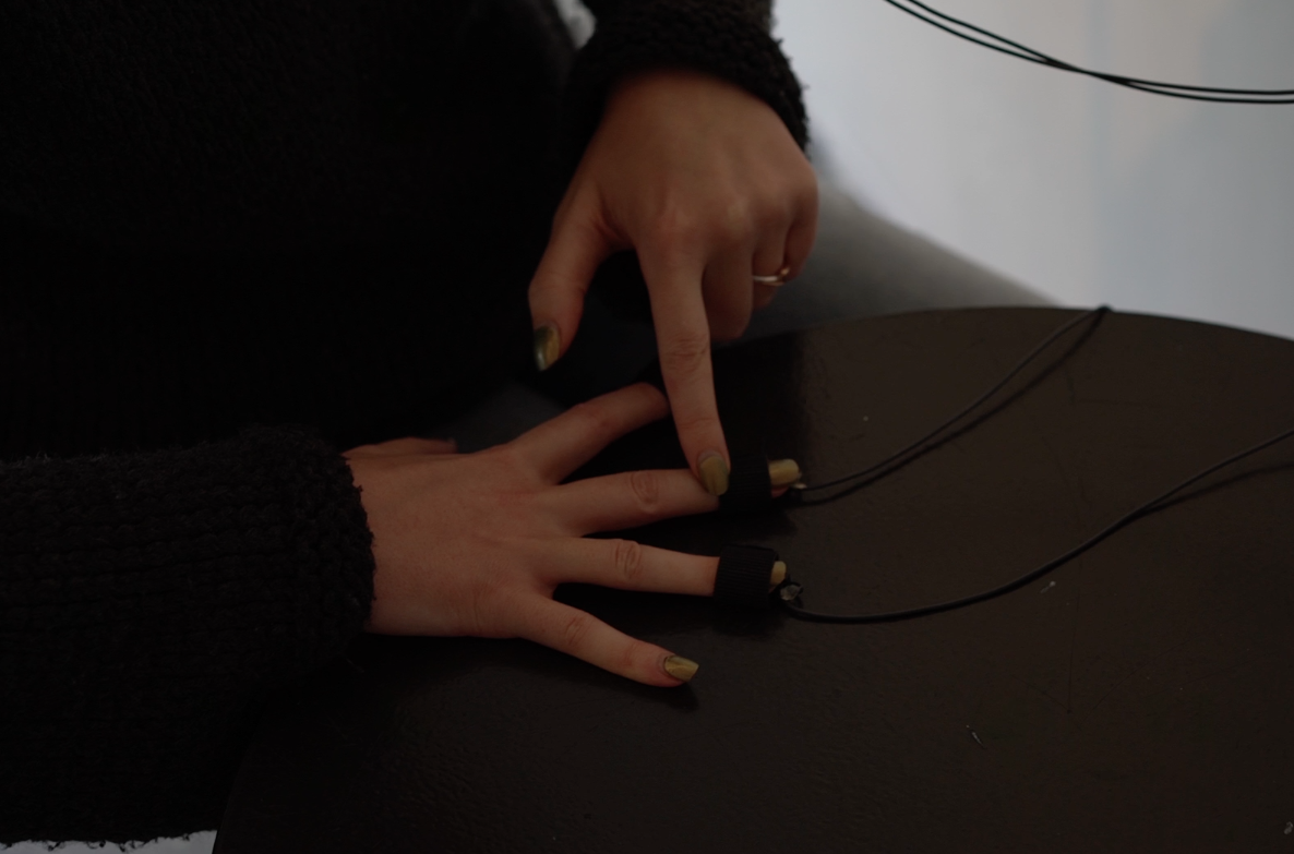 The installation is based on the BioSynth, an embedded device designed by Erin to audify physiological data. The BioSynth core is a Teensy microcontroller, connected to: