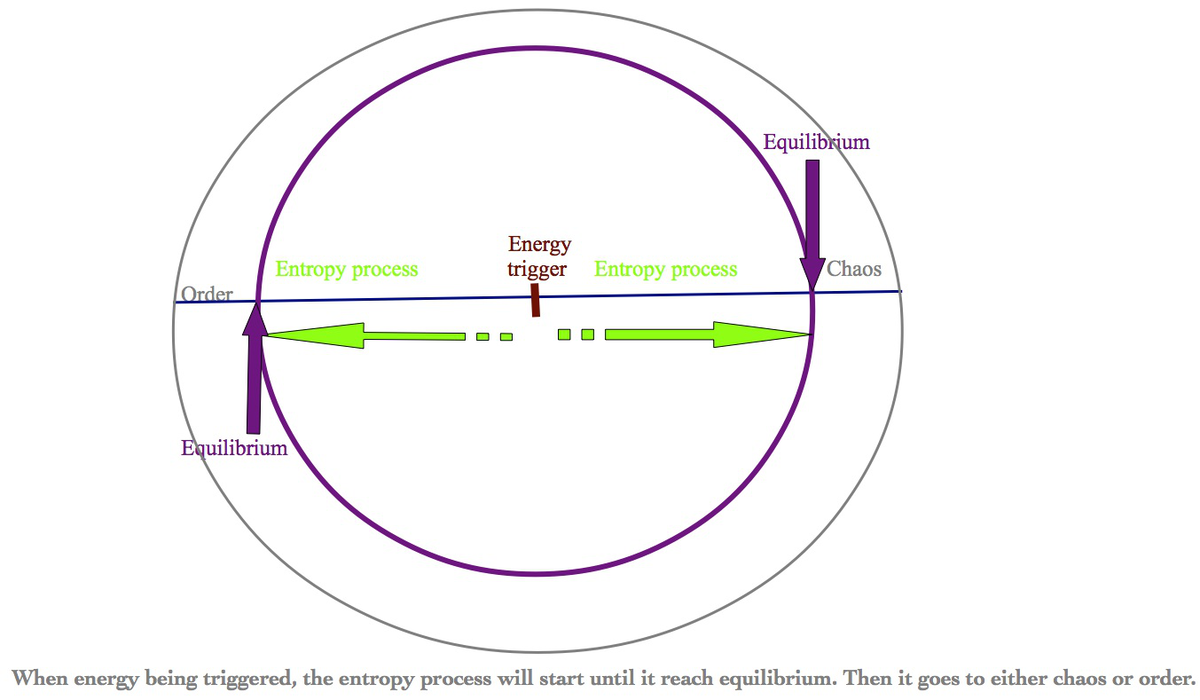 The happening of entropy requires an initial energy trigger. An initial energy trigger means the action. When there is action, there will be entropy. When the energy lead to chaos is entropy and leads to order it is negentropy.