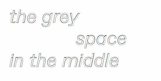 The Grey Space in the Middle is a space for fundamental creativity. It is an open laboratory and presentation space where art and digital culture unite with science and philosophy in an anti-disciplinary state, connecting [zeitgeist] + [network] + [technology].