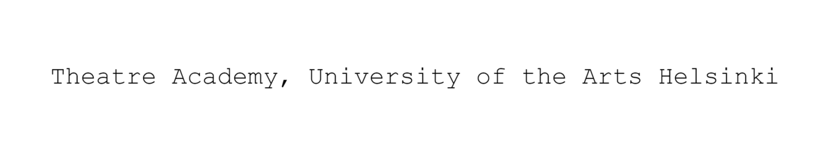 The Theatre Academy Helsinki is a building where the textual writing of this commentary has mainly taken place. As a place, it is not only a social or choreographic apparatus itself but also a discursive entity that has influenced this commentary by the fact that the body of the artist-researcher has been inside its walls and corridors. This body has been imbued with the discursive realm of the doctoral program of the Performing Arts Research Centre at the Theatre Academy during 2013-2019. Prior to this process, I studied at the Theatre Academy from 1998–2003 for a BA in Dance and MA in Choreography.