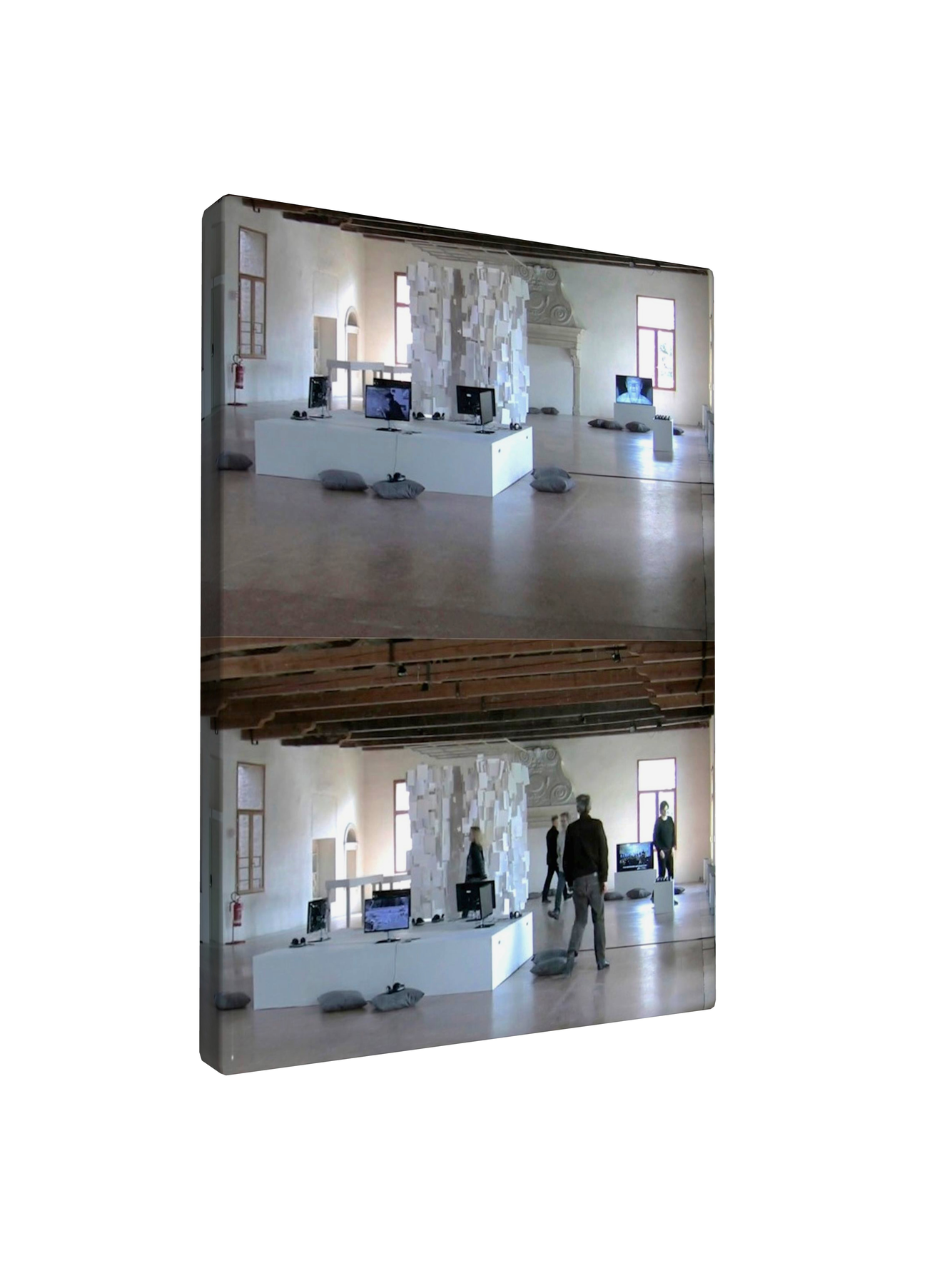 Through this work I have developed contextual and situational sensitivity towards the circumstances in which the artistic work takes place. The contextualization of the Hiding video in various spaces also examined the movement of the viewer on those specific locations by focusing on the relation between the movement that is needed to experience the work and the movement of the viewer that is generated by the work. In Venice the video screen was set in one corner of the exhibition space, and by turning 180° the viewer could see the part of the exhibition space in which the work had been done. In the video, the viewer could see how the curatorial team of the Research Pavilion is hiding in the installed works within the space. In this version, the movement of the viewer plays a crucial, playful part of the work, and I hoped that contextualizing the work this way could be perceived as a choreographic work altogether activated by the viewer and not only through understanding choreography as the documented gesture in the video.