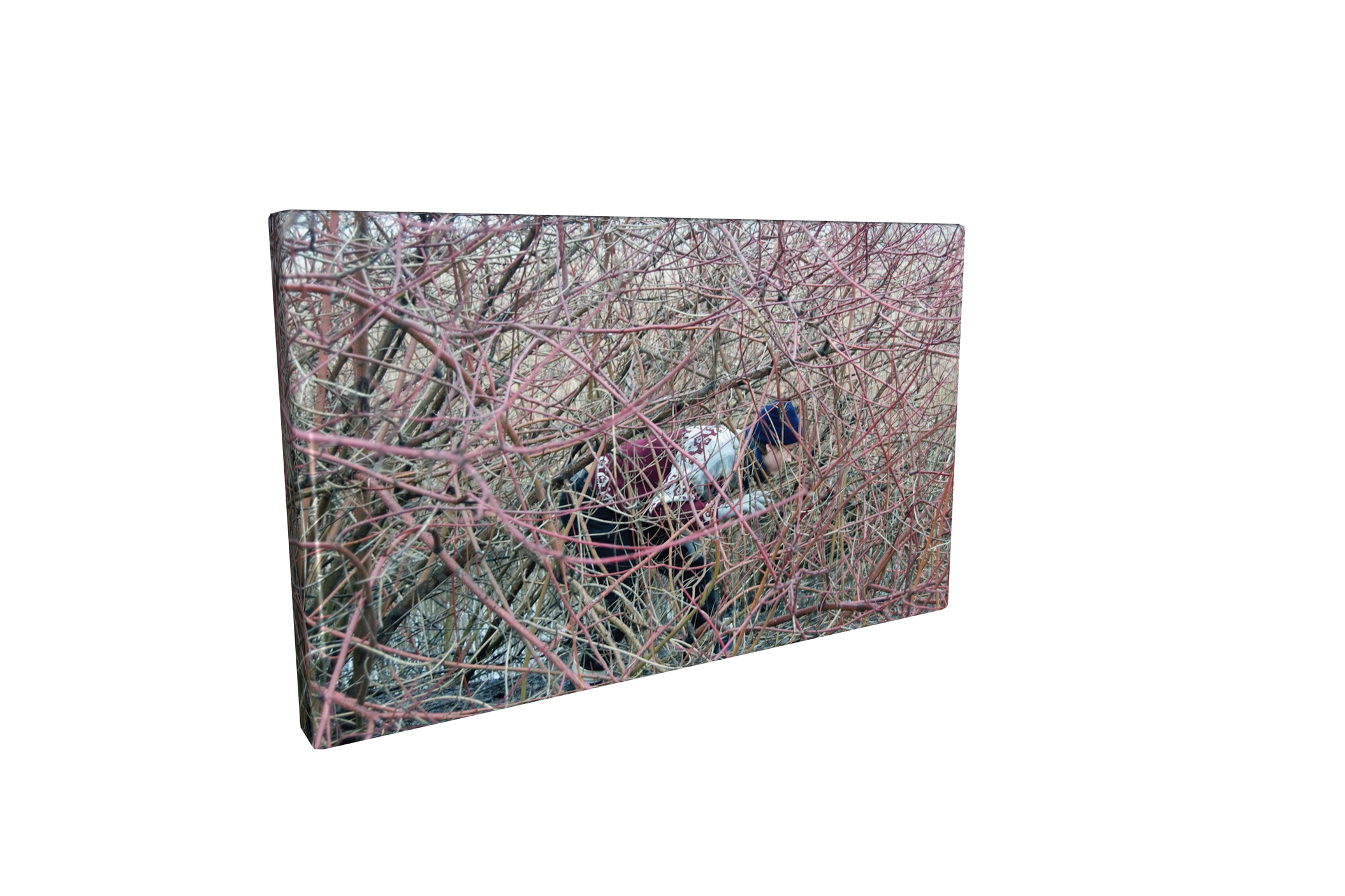 Besides the walkway of one part of the route around Töölönlahti, there is a long row of shrubs with dense branches. I wanted to take a closer look at this particular part and experiment with that, because it was parallel to the usual path that people were jogging and walking on. I decided to climb into the shrubs and try to continue walking around Töölönlahti there. Mesh is a documentation of this experiment. In the video, I walk a few meters through the shrubs, and at the same time people pass by the screen on the walkway, either walking or jogging. In my movements, I take care of the branches in a way that I do not break them, so my moving is slow, bent, and attentive. The work points out the mundane movements of the passersby.