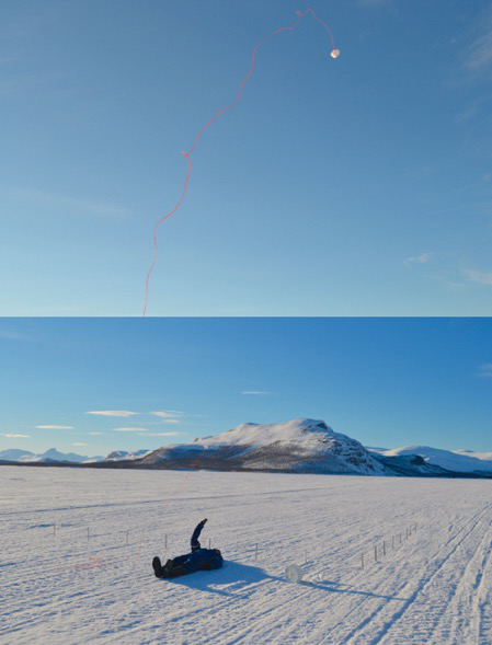 The residency operates at the Kilpisjärvi Biological Station of the University of Helsinki in sub-Arctic Lapland. The station has many statistics on its walls in the corridors. In reading them I became curious about how the surrounding movement could be turned into descriptive statistics. If statistics is seen as a capturing apparatus, I wanted to try to catch one of the relevant movements here: throwing a snowball. I took 16 metal sticks and light rope with me and went on the lake Kilpisjärvi. I built a small chart onto which I threw a snowball, which is attached to the rope.