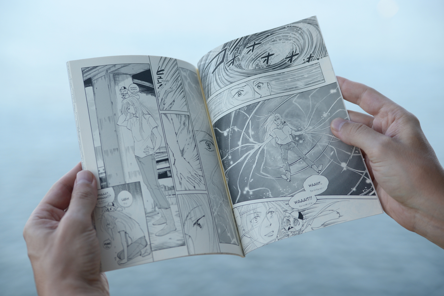 On the right side, there are two examples of manga from the project. The first episode has 6 panels and the second one has 5. In order to view the manga, scroll to the first panel on the right and move to the left.