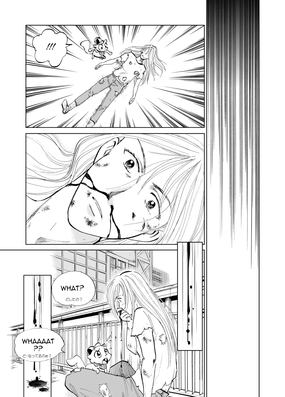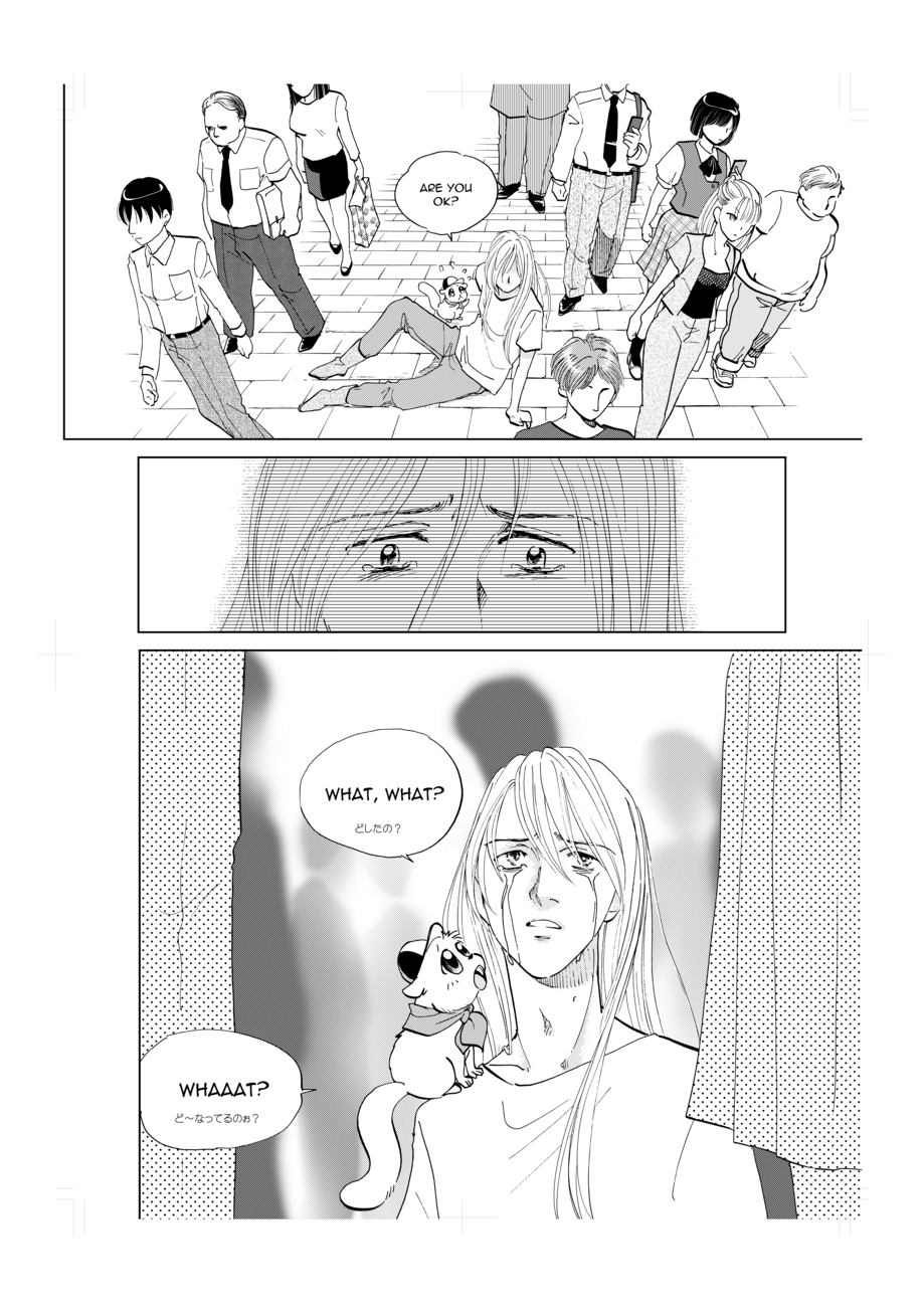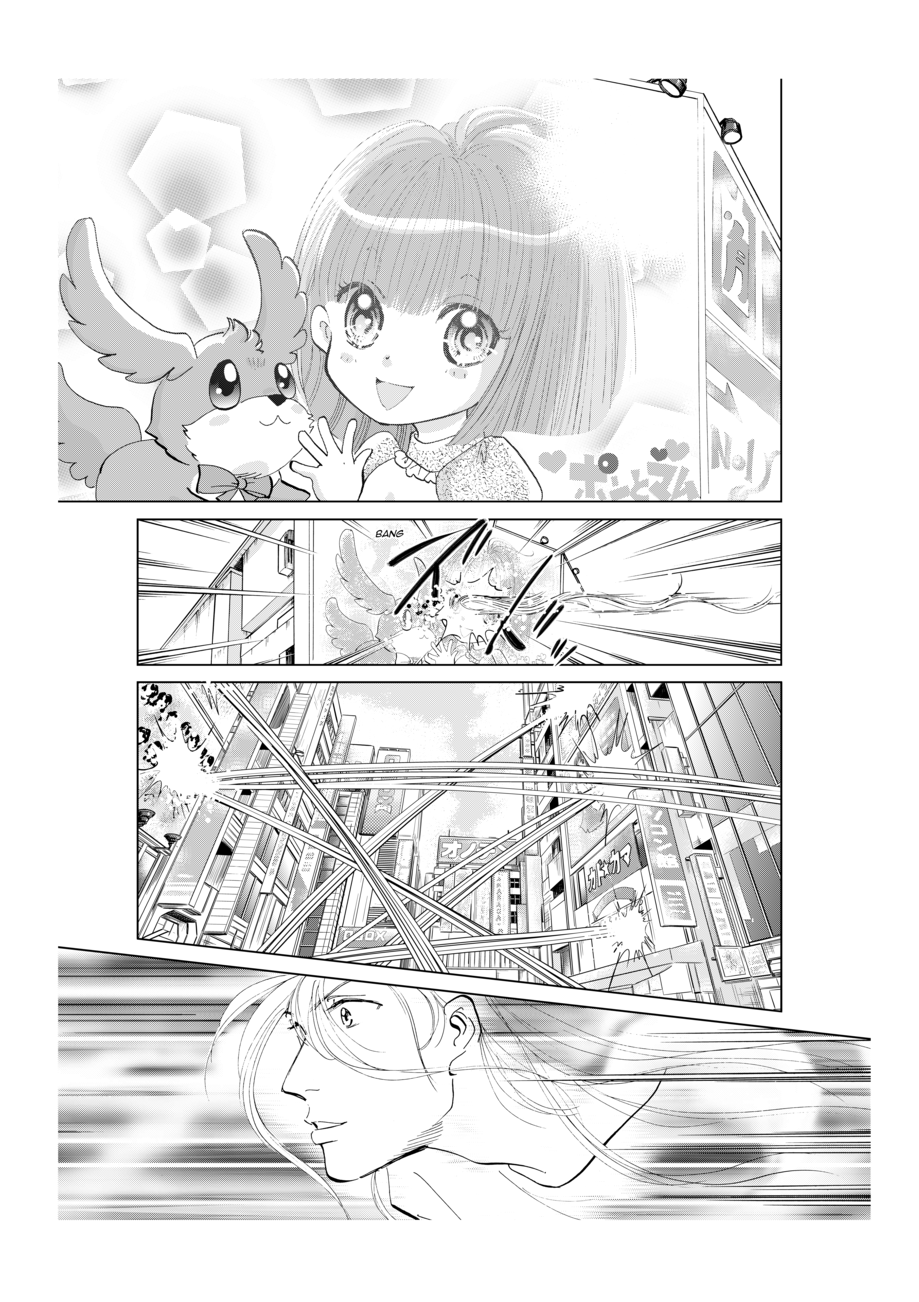 In each scene of manga, pompom connects with the location in a specific way – either by his own actions or by meeting an active agent or entity in the location. The connection causes the location’s transformation into nebula, so each scene combines the micro-scene with the galactic one by extending towards the cosmic scale of movements at hand.