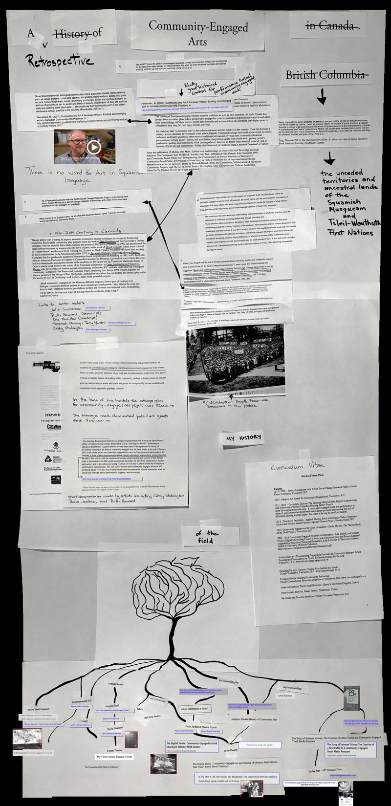 The question: whom do you walk with? Was put to me as a way to reflect on the history of my practice as a community engaged artist over the last part of the twentieth century living on the west coast of Canada. This interactive research space is an attempt to respond to an alternative notion of history and the influences on this art form over the course of thirty years. It also seeks to acknowledge the communities of people this art practice allied itself with. These people and their communities often lived outside and beyond the margins of the national narrative of history and its parade.