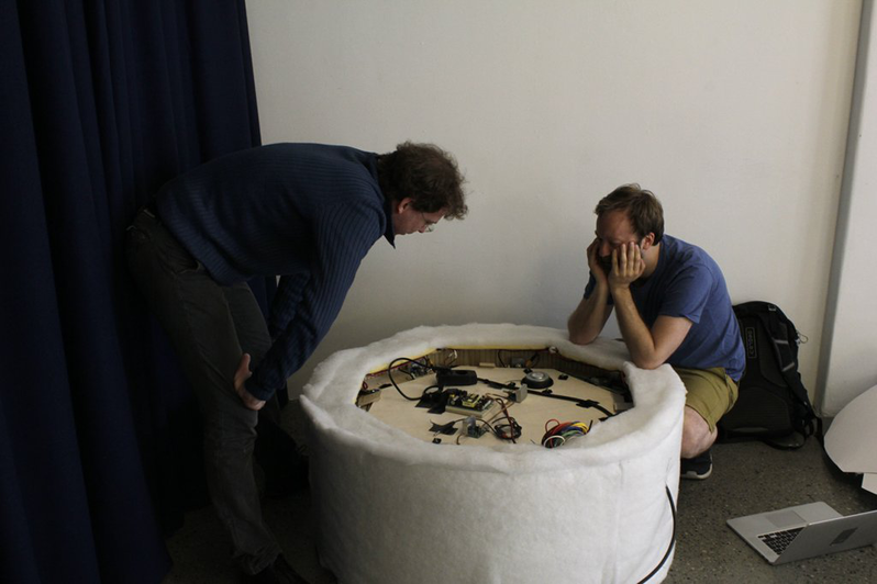Exposition for the workshop-in-exposition taking place in Bergen, Norway, June 2018. This event is a collaboration between Almat and BEK Bergen for Electronic Art, and part of BEK and Notam’s ongoing series of workshops for advanced users. It is a hybrid format that places the workshop inside an exhibition context, where the exposed works and artefacts form the basis of the workshop’s activity. Instead of “closed works”, what is exposed to the general public are objects, sounds or installations that are open to engagement and reconfiguration during the workshop. Theme: Thresholds are locations of transitions, points where one modality becomes another, where a qualitative change occurs. In physics the point where an aggregate state changes—the phase transition—is a distinguished transitional location where the properties of the adjacent states become evident. Similarly, in this workshop-in-exposition we want to study the properties of the algorithmic by putting ourselves in threshold positions and actively shape them. More than merely separating two sides, one can spend time on a threshold, move along a ridge, performing a tightrope walk while trying not to fall to either side.
