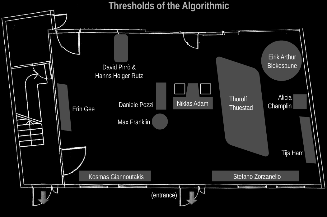 Exposition for the workshop-in-exposition taking place in Bergen, Norway, June 2018. This event is a collaboration between Almat and BEK Bergen for Electronic Art, and part of BEK and Notam’s ongoing series of workshops for advanced users. It is a hybrid format that places the workshop inside an exhibition context, where the exposed works and artefacts form the basis of the workshop’s activity. Instead of “closed works”, what is exposed to the general public are objects, sounds or installations that are open to engagement and reconfiguration during the workshop. Theme: Thresholds are locations of transitions, points where one modality becomes another, where a qualitative change occurs. In physics the point where an aggregate state changes—the phase transition—is a distinguished transitional location where the properties of the adjacent states become evident. Similarly, in this workshop-in-exposition we want to study the properties of the algorithmic by putting ourselves in threshold positions and actively shape them. More than merely separating two sides, one can spend time on a threshold, move along a ridge, performing a tightrope walk while trying not to fall to either side.
