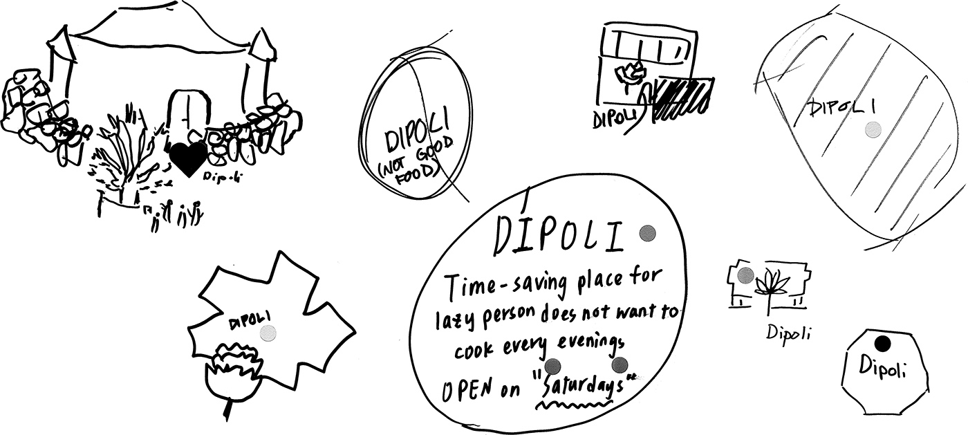 Dipoli is a building with a distinct symbolic form and a sculpture in front of it which resembles a pine cone. This symbolic interpretation dominates the mental images. It is a shape close to a circle with a symbol for the cone sculpture and with landscape elements around it. The written comments focus on its functional value: the building has a student restaurant that is open on Saturdays which reduces the necessity to cook for those who live in the student village.