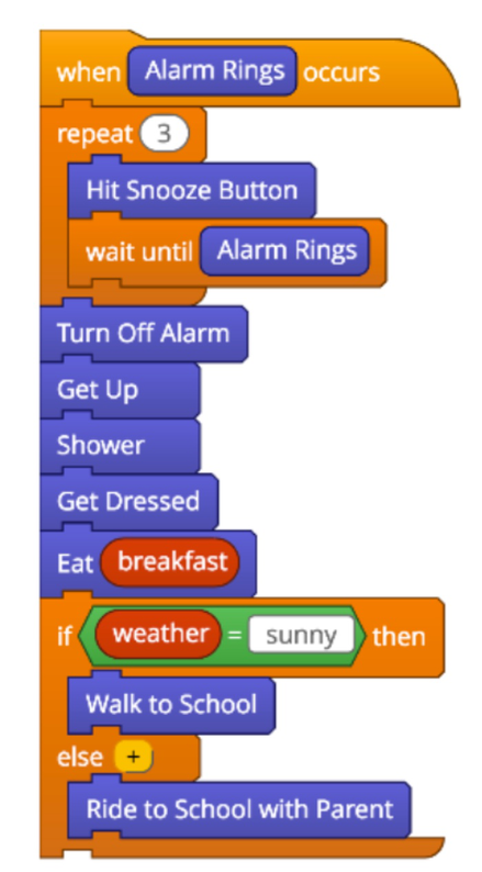 Allow me to give some more simple examples. First is a description of a sequence of tasks that a child goes through in order to get ready for school: